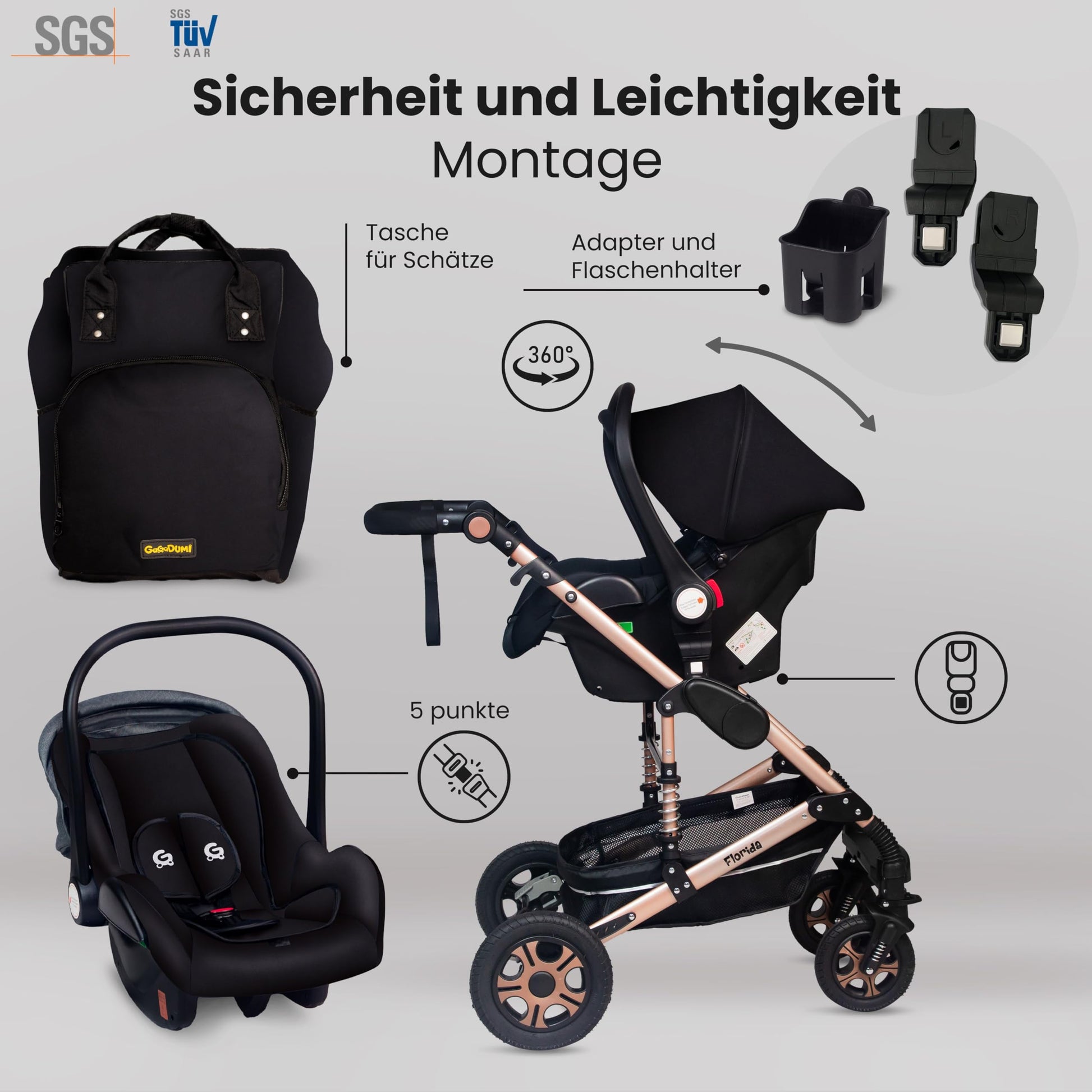 - 3-IN-1 KOMPLETTSET: Von der Geburt bis zum Kleinkindalter bietet dieser Kinderwagen alles, was du benötigst. Mit einer vielfältigen Auswahl an Zubehörteilen ermöglicht er dir optimale Mobilität ab dem Moment der Geburt deines Kindes. Der Kinderwagen sorgt für den bequemen Komfort deines Babys, während die Babyschale bereits für die erste Autofahrt genutzt werden kann. Dank des einfachen Klick-Systems lässt sich die Babyschale mühelos auf das Gestell montieren.