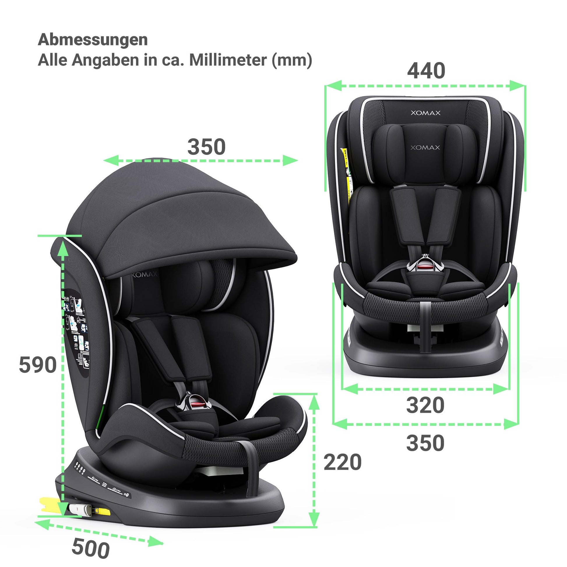 XOMAX 946i Kindersitz drehbar 360° mit ISOFIX, Liegefunktion I mitwachsend I 0-36 kg, 0-12 Jahre, Gruppe 0/1/2/3 I 5-Punkt-Gurt und 3-Punkt-Gurt I Bezug abnehmbar, waschbar I ECE R129